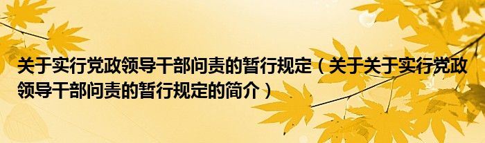 本文關于關于實行黨政領導干部問責的暫行規定的簡介就講解完畢,希望對大家有所幫助。