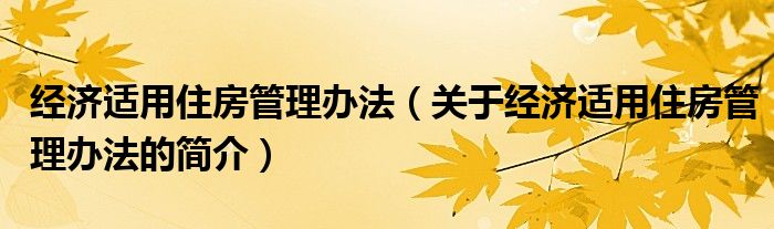 本文關(guān)于經(jīng)濟(jì)適用住房管理辦法的簡(jiǎn)介就講解完畢,希望對(duì)大家有所幫助。