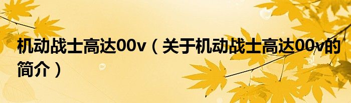 大家好,機(jī)動戰(zhàn)士高達(dá)00v,關(guān)于機(jī)動戰(zhàn)士高達(dá)00v的簡介很多人還不知道,現(xiàn)在讓我們一起來看看吧!