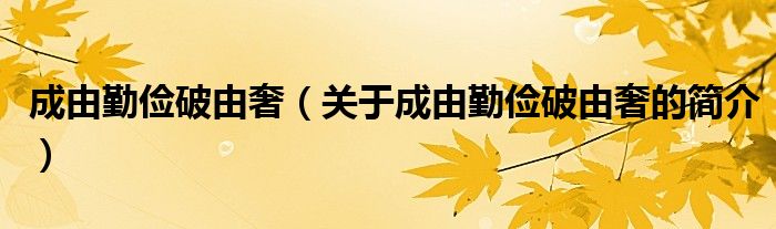 大家好,成由勤儉破由奢,關于成由勤儉破由奢的簡介很多人還不知道,現在讓我們一起來看看吧!