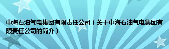 本文關于中海石油氣電集團有限責任公司的簡介就講解完畢,希望對大家有所幫助。