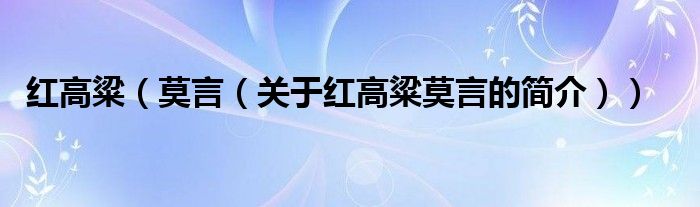 本文關(guān)于紅高粱 莫言的簡(jiǎn)介就講解完畢,希望對(duì)大家有所幫助。