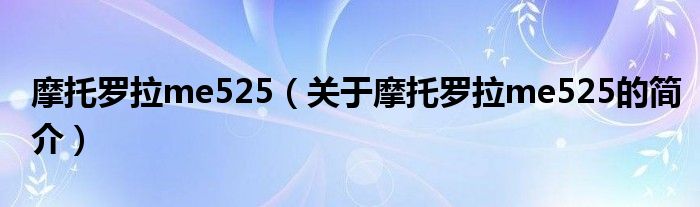 本文關于摩托羅拉me525的簡介就講解完畢,希望對大家有所幫助。