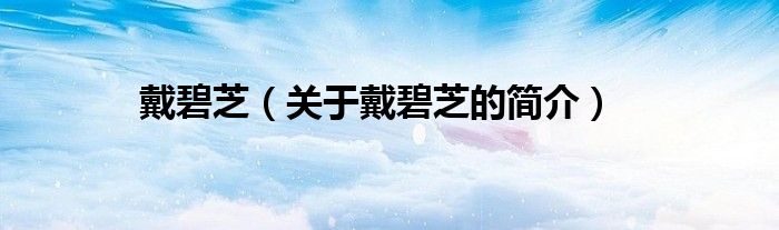 本文關于戴碧芝的簡介就講解完畢,希望對大家有所幫助。