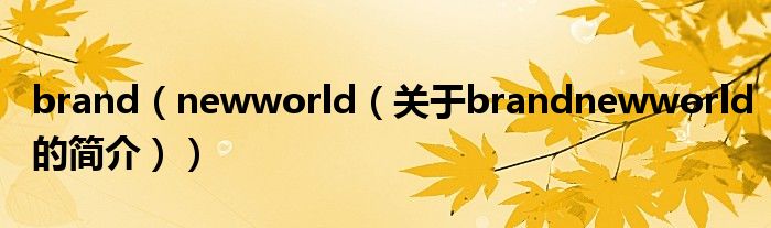 本文關于brand new world的簡介就講解完畢,希望對大家有所幫助。
