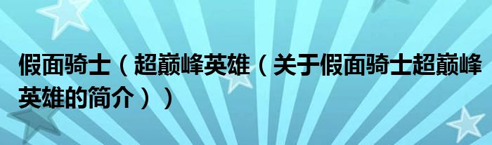 大家好,假面騎士 超巔峰英雄,關于假面騎士 超巔峰英雄的簡介很多人還不知道,現在讓我們一起來看看吧!