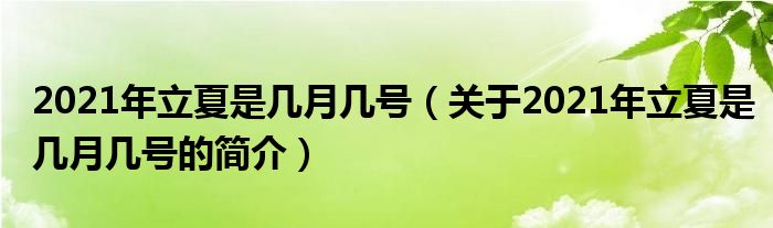 本文關于2021年立夏是幾月幾號的簡介就講解完畢,希望對大家有所幫助。