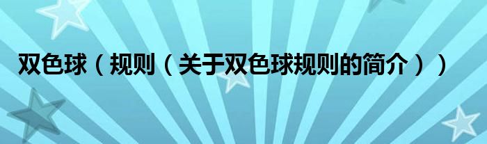 本文關于雙色球 規則的簡介就講解完畢,希望對大家有所幫助。