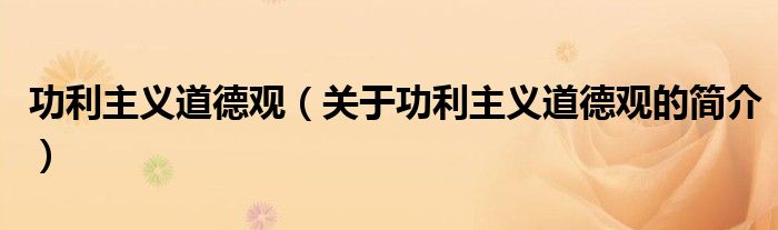 本文關于功利主義道德觀的簡介就講解完畢,希望對大家有所幫助。