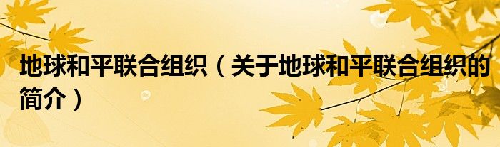 本文關(guān)于地球和平聯(lián)合組織的簡介就講解完畢,希望對大家有所幫助。