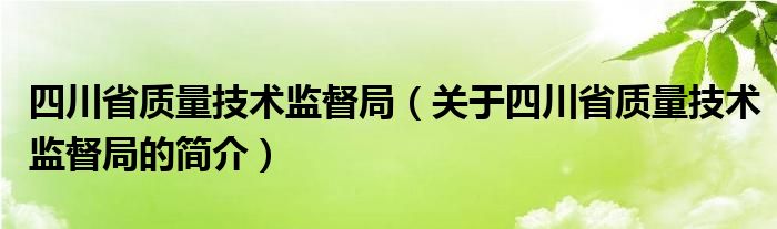 本文關于四川省質量技術監督局的簡介就講解完畢,希望對大家有所幫助。