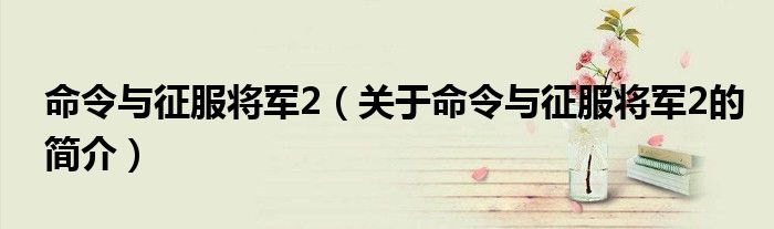 本文關于命令與征服將軍2的簡介就講解完畢,希望對大家有所幫助。