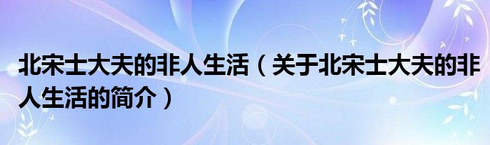 本文關于北宋士大夫的非人生活的簡介就講解完畢,希望對大家有所幫助。