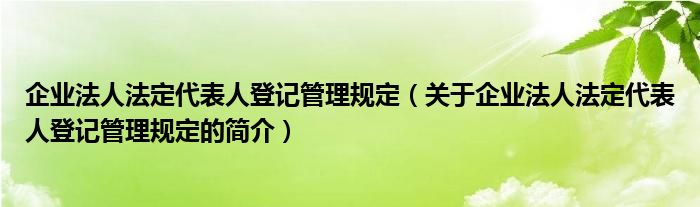 本文關于企業(yè)法人法定代表人登記管理規(guī)定的簡介就講解完畢,希望對大家有所幫助。