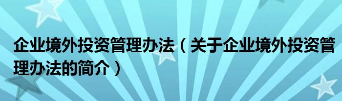 本文關于企業境外投資管理辦法的簡介就講解完畢,希望對大家有所幫助。