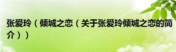 本文關于張愛玲 傾城之戀的簡介就講解完畢,希望對大家有所幫助。