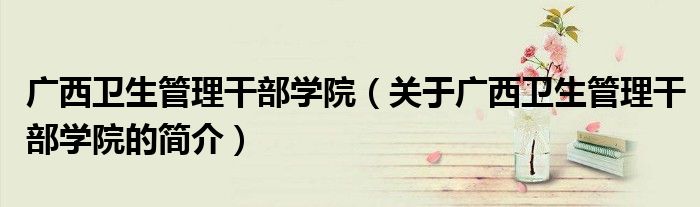 大家好,廣西衛生管理干部學院,關于廣西衛生管理干部學院的簡介很多人還不知道,現在讓我們一起來看看吧!