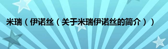 大家好,米瑞 伊諾絲,關于米瑞 伊諾絲的簡介很多人還不知道,現在讓我們一起來看看吧!