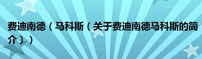 大家好,費(fèi)迪南德 馬科斯,關(guān)于費(fèi)迪南德 馬科斯的簡介很多人還不知道,現(xiàn)在讓我們一起來看看吧!