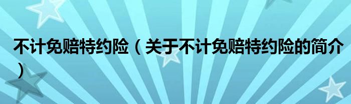 本文關于不計免賠特約險的簡介就講解完畢,希望對大家有所幫助。