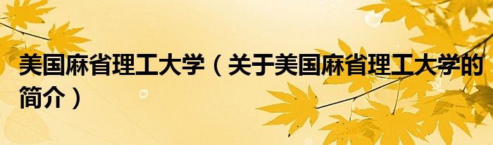 本文關于美國麻省理工大學的簡介就講解完畢,希望對大家有所幫助。