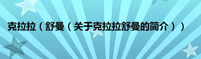 本文關于克拉拉 舒曼的簡介就講解完畢,希望對大家有所幫助。