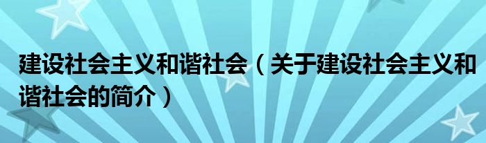 大家好,建設(shè)社會主義和諧社會,關(guān)于建設(shè)社會主義和諧社會的簡介很多人還不知道,現(xiàn)在讓我們一起來看看吧!