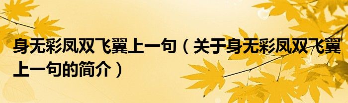 本文關于身無彩鳳雙飛翼上一句的簡介就講解完畢,希望對大家有所幫助。