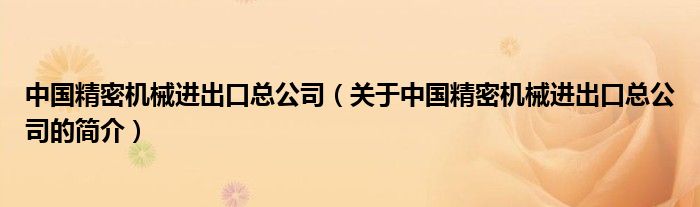 本文關于中國精密機械進出口總公司的簡介就講解完畢,希望對大家有所幫助。