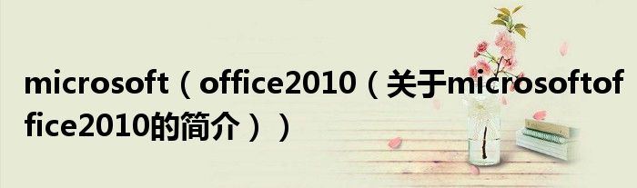 大家好,microsoft office2010,關(guān)于microsoft office2010的簡(jiǎn)介很多人還不知道,現(xiàn)在讓我們一起來看看吧!