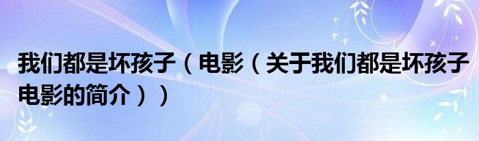 本文關(guān)于我們都是壞孩子 電影的簡(jiǎn)介就講解完畢,希望對(duì)大家有所幫助。