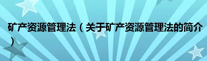 本文關(guān)于礦產(chǎn)資源管理法的簡(jiǎn)介就講解完畢,希望對(duì)大家有所幫助。