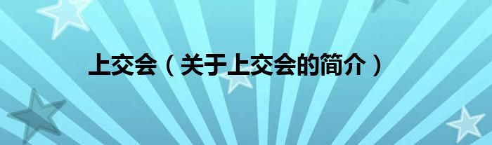 大家好,上交會,關于上交會的簡介很多人還不知道,現在讓我們一起來看看吧!