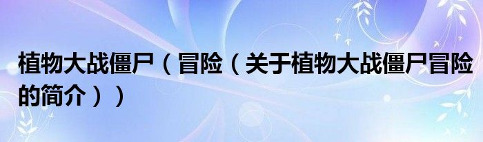 本文關于植物大戰僵尸 冒險的簡介就講解完畢,希望對大家有所幫助。