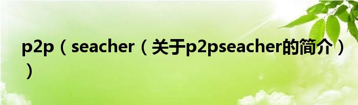 大家好,p2p seacher,關(guān)于p2p seacher的簡(jiǎn)介很多人還不知道,現(xiàn)在讓我們一起來看看吧!
