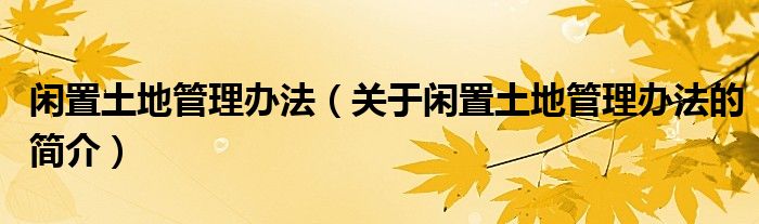本文關于閑置土地管理辦法的簡介就講解完畢,希望對大家有所幫助。