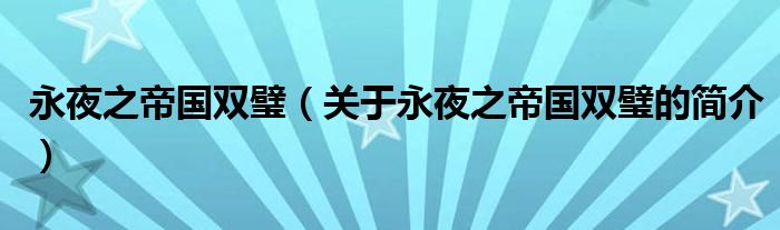 本文關于永夜之帝國雙璧的簡介就講解完畢,希望對大家有所幫助。
