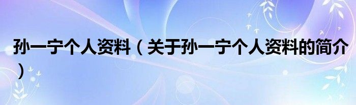 大家好,孫一寧個人資料,關于孫一寧個人資料的簡介很多人還不知道,現在讓我們一起來看看吧!