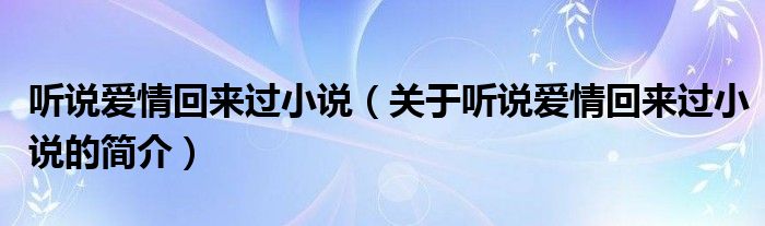 大家好,聽說愛情回來過小說,關于聽說愛情回來過小說的簡介很多人還不知道,現(xiàn)在讓我們一起來看看吧!