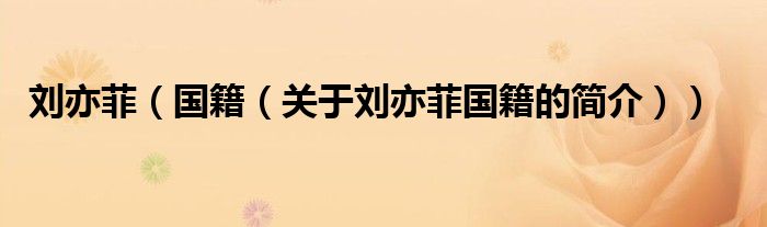 本文關于劉亦菲 國籍的簡介就講解完畢,希望對大家有所幫助。