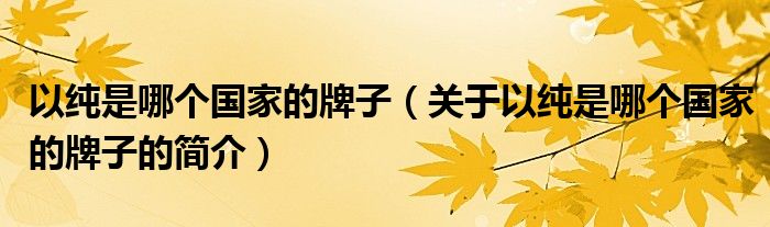 本文關于以純是哪個國家的牌子的簡介就講解完畢,希望對大家有所幫助。