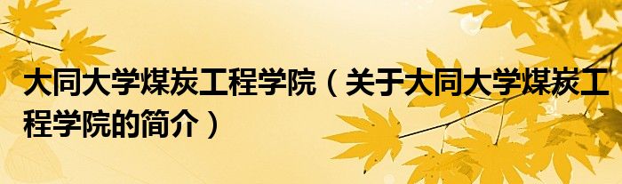 本文關于大同大學煤炭工程學院的簡介就講解完畢,希望對大家有所幫助。