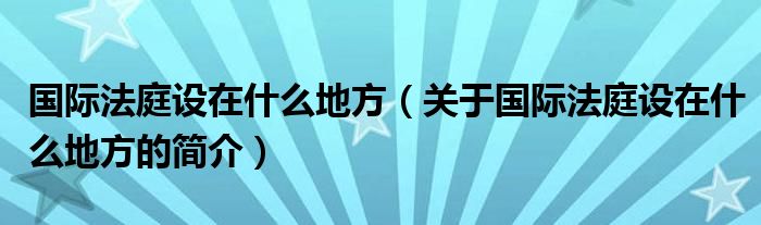 本文關(guān)于國際法庭設(shè)在什么地方的簡介就講解完畢,希望對大家有所幫助。