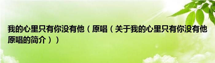 本文關(guān)于我的心里只有你沒有他 原唱的簡介就講解完畢,希望對大家有所幫助。