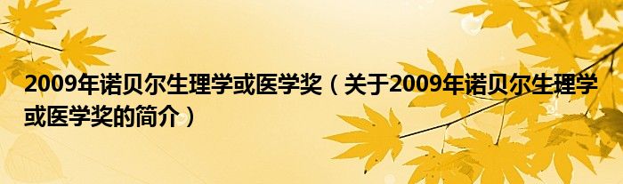 本文關于2009年諾貝爾生理學或醫學獎的簡介就講解完畢,希望對大家有所幫助。