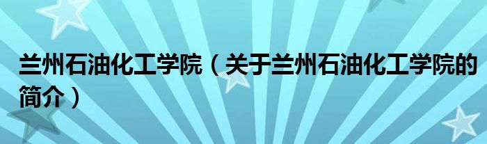 本文關于蘭州石油化工學院的簡介就講解完畢,希望對大家有所幫助。