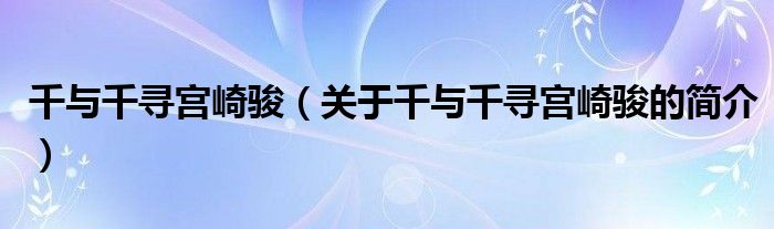 本文關于千與千尋宮崎駿的簡介就講解完畢,希望對大家有所幫助。