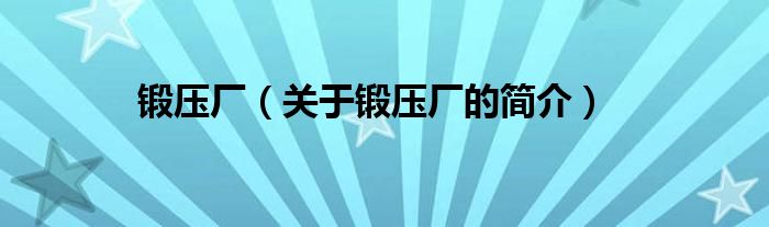 本文關(guān)于鍛壓廠的簡(jiǎn)介就講解完畢,希望對(duì)大家有所幫助。