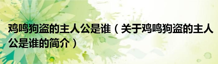 大家好,雞鳴狗盜的主人公是誰,關于雞鳴狗盜的主人公是誰的簡介很多人還不知道,現在讓我們一起來看看吧!