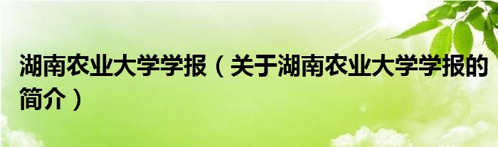 本文關于湖南農業大學學報的簡介就講解完畢,希望對大家有所幫助。